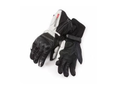 Guants de cuir amb membrana impermeable i fibra tèrmica. Proteccions internes i palmells reforçats. Logotip'APRILIA'.