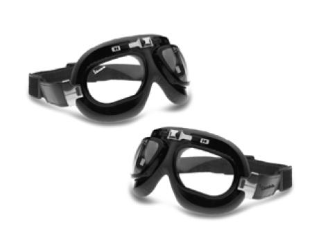 Ulleres per al casc amb banda negra elàstica i regulable. Muntura metàl·lica negra amb detalls cromats. Corbat de la muntura: 12°. Lents de policarbonat antivaho. Embuatat de ecopiel. Logotip Vespa en la lent i en la banda. Accessori per a cascs vàlid per a qualsevol model de casc JET o DEMI JET sense pantalla.