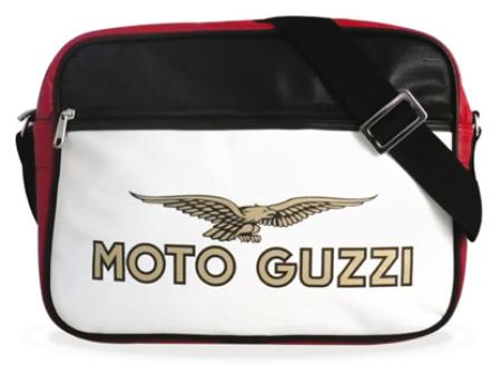 Compuesta de dos compartimentos: principal y lateral. Decoración Águila Moto Guzzi en el frente. Medidas: 32x25x11. También en color negro