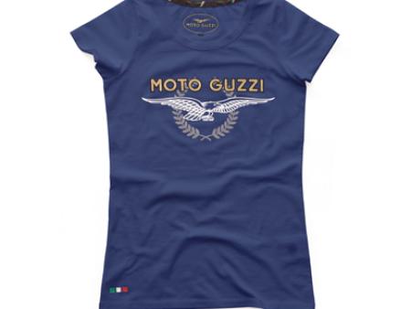Camiseta de mujer elástica de algodón. Logotipo “MOTO GUZZI” y águila bordados.